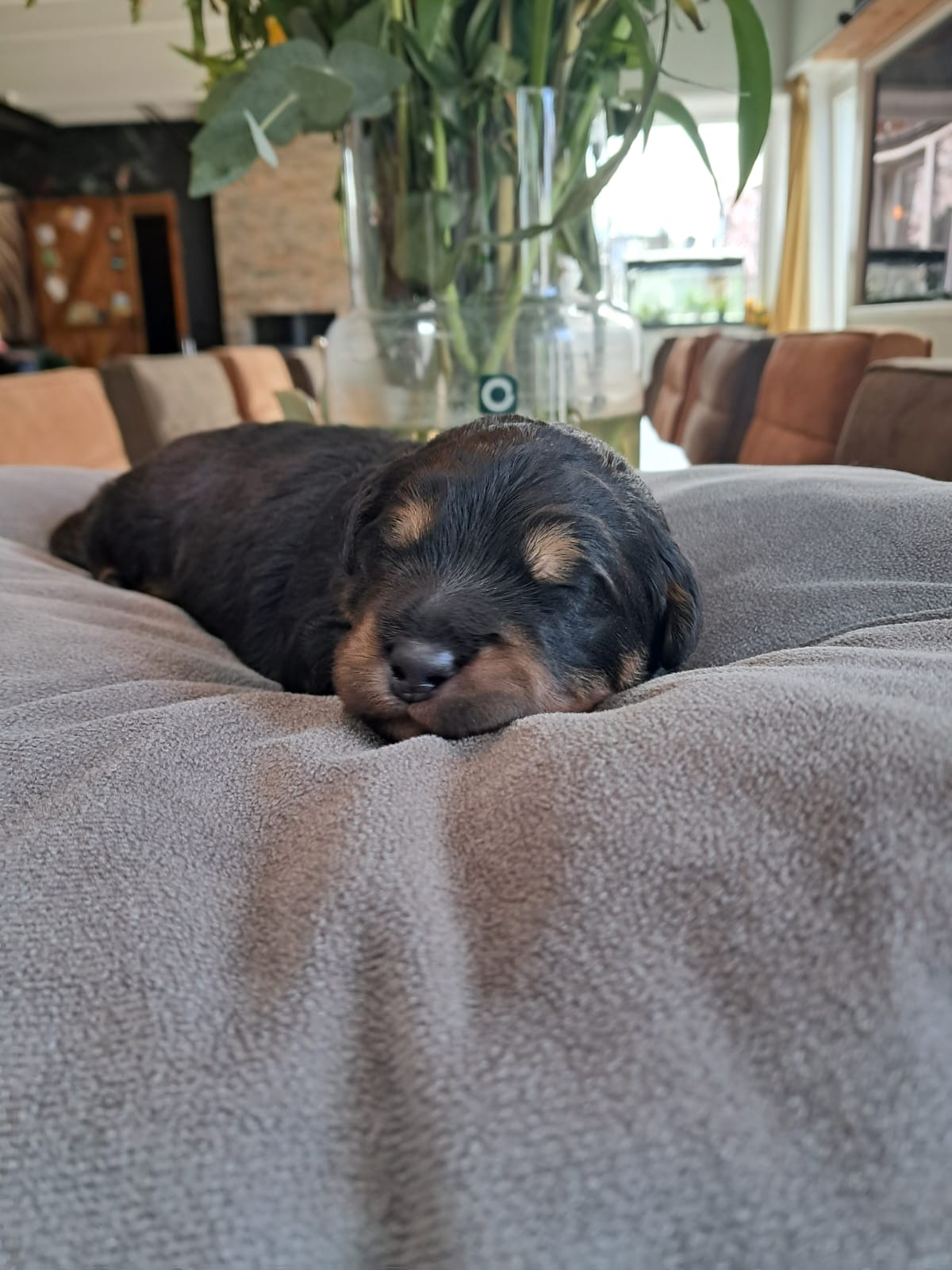 Wij hebben een prachtig nestje F1 pups van onze multigen labradoodle Odin (grote medium, bijna geen verharen) en Berner Sennen Bobbi.