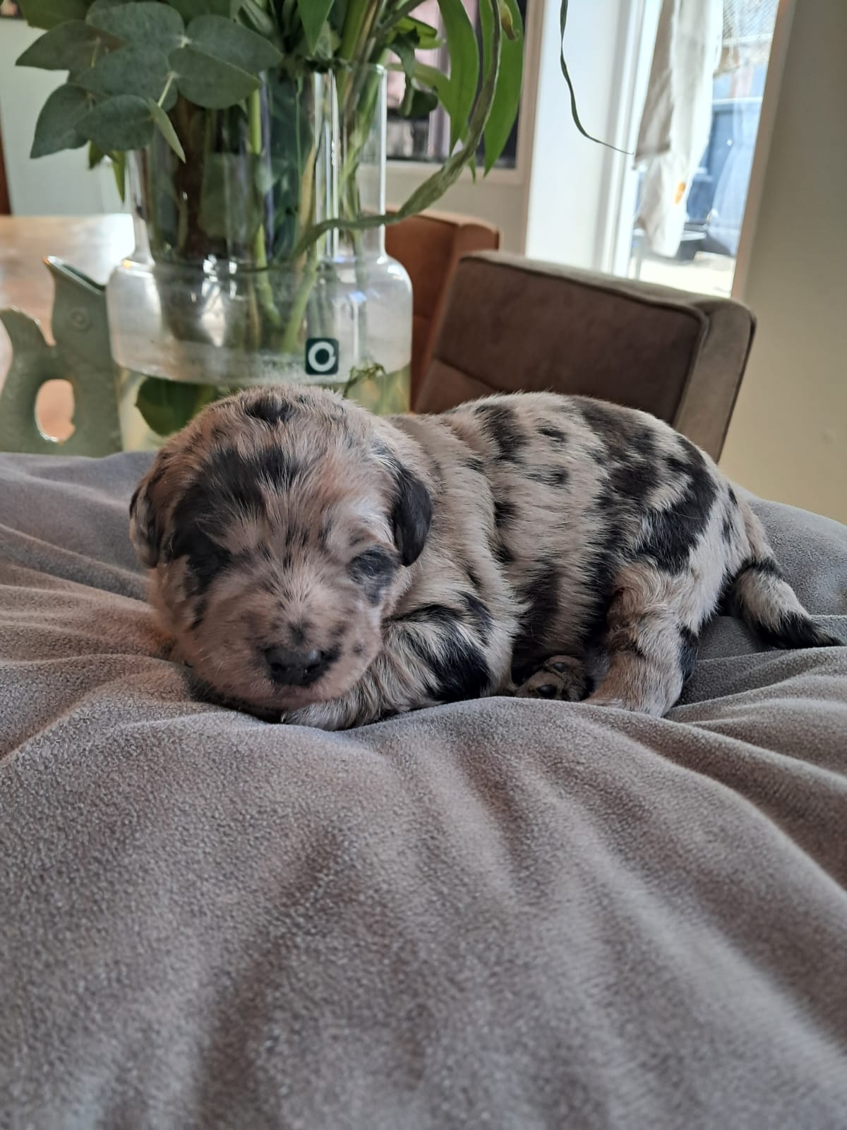 Een Labradoodle is een kruising tussen een Labrador Retriever en een Poedel. Dit ras combineert het vriendelijke, actieve karakter van de Labrador met de intelligentie en vaak hypoallergene vachttype van de Poedel.